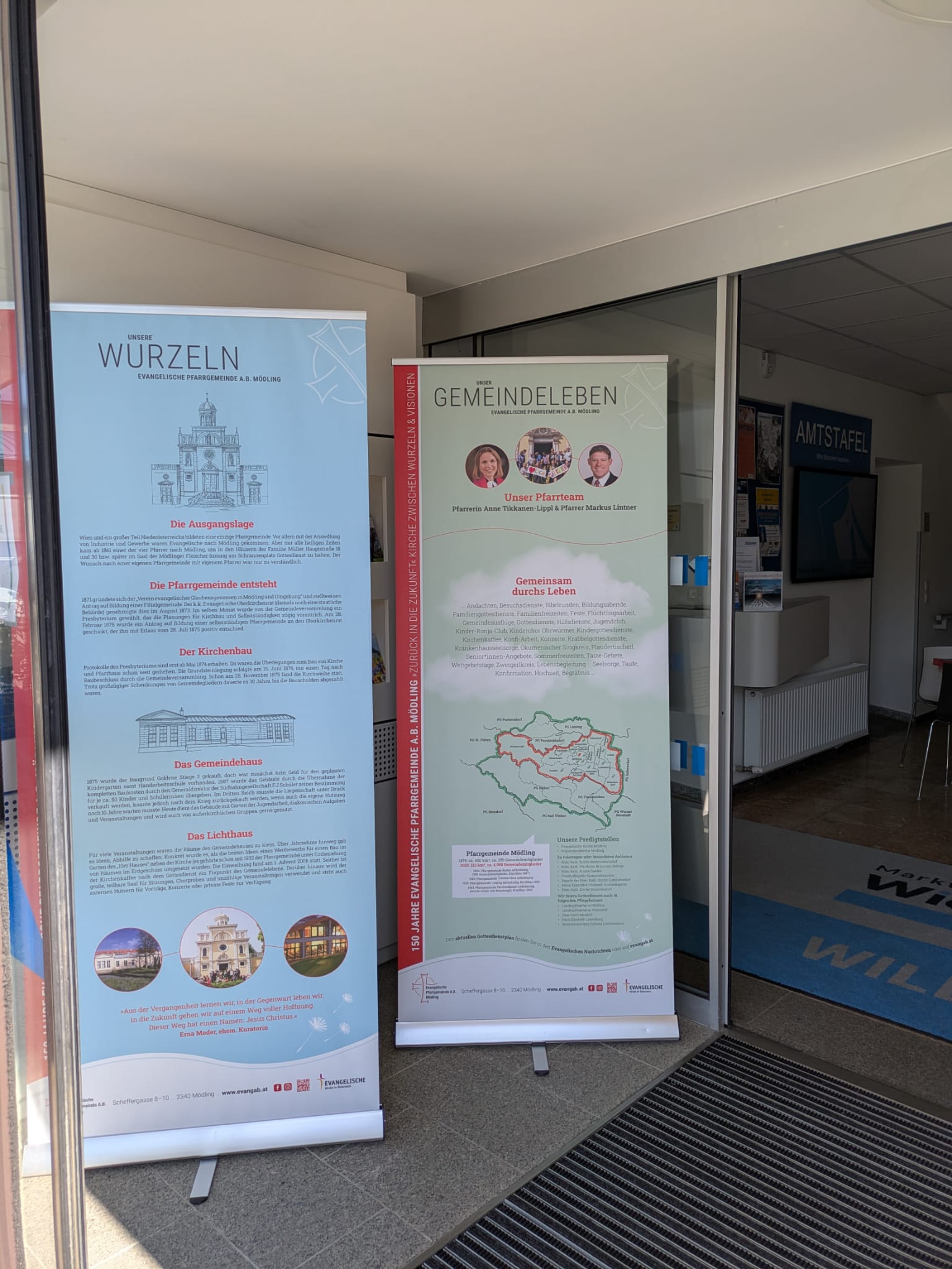 April 2025: Unsere Wanderausstellung auf Tour durch die Gemeinden unseres Pfarrgebietes. Hier in Wiener Neudorf -